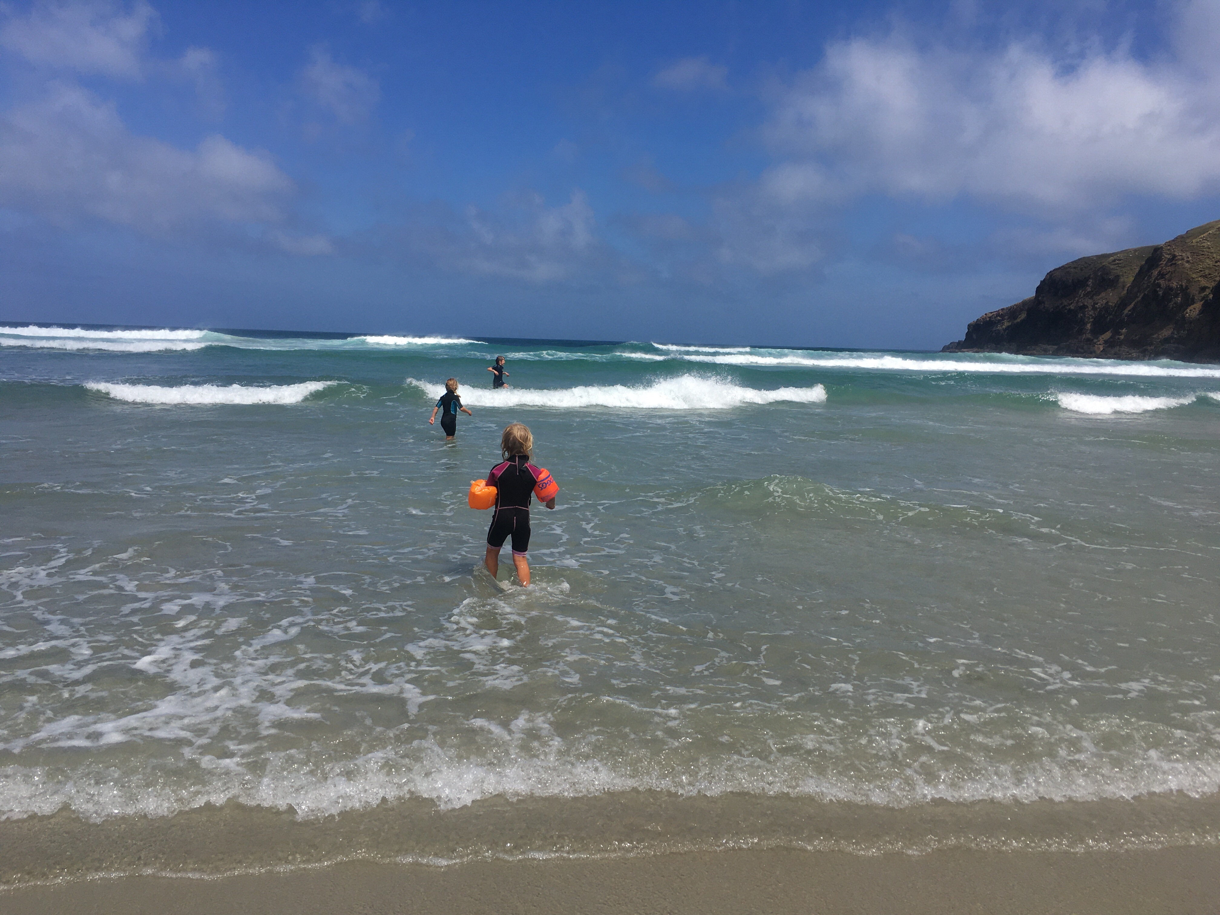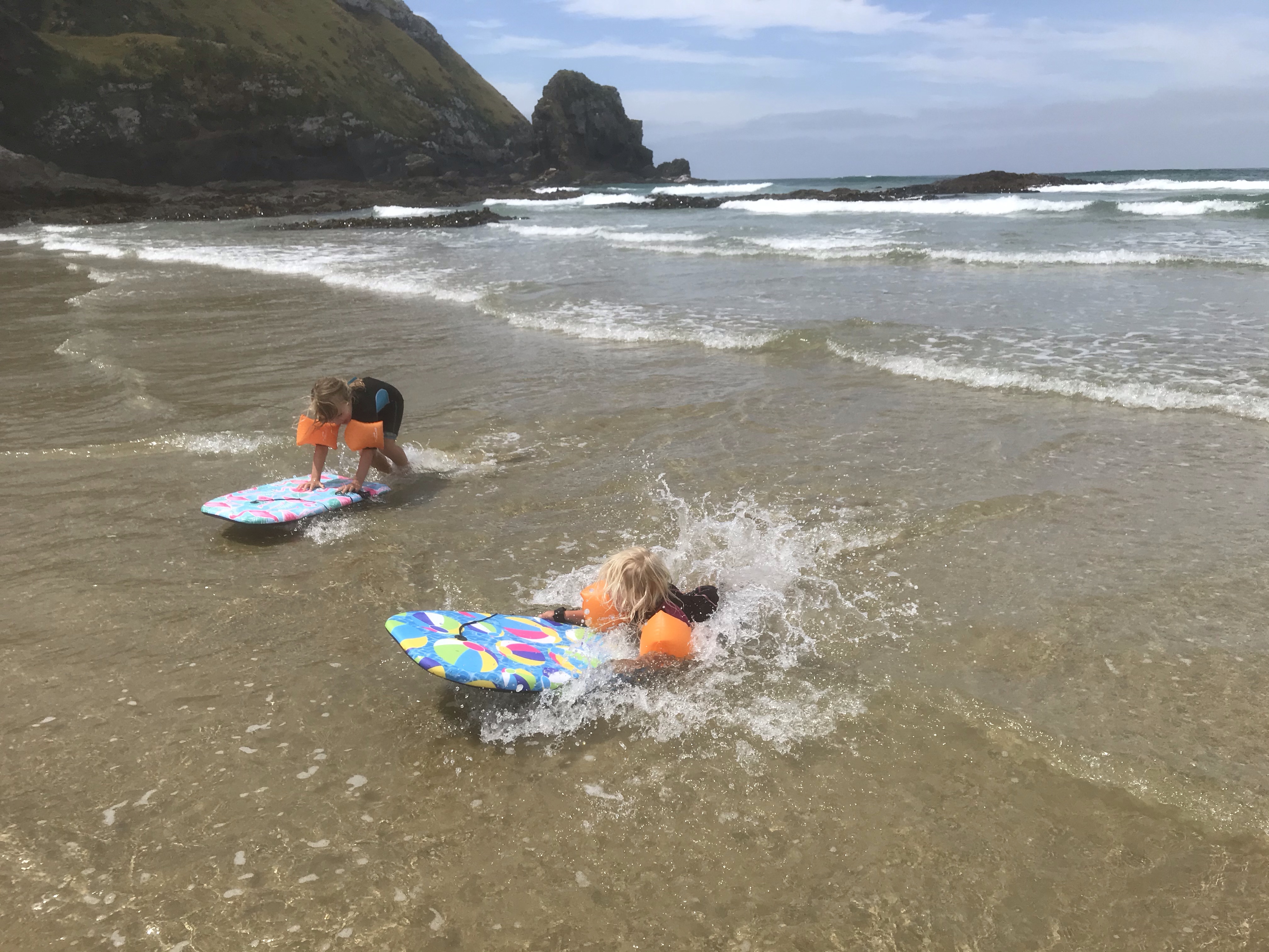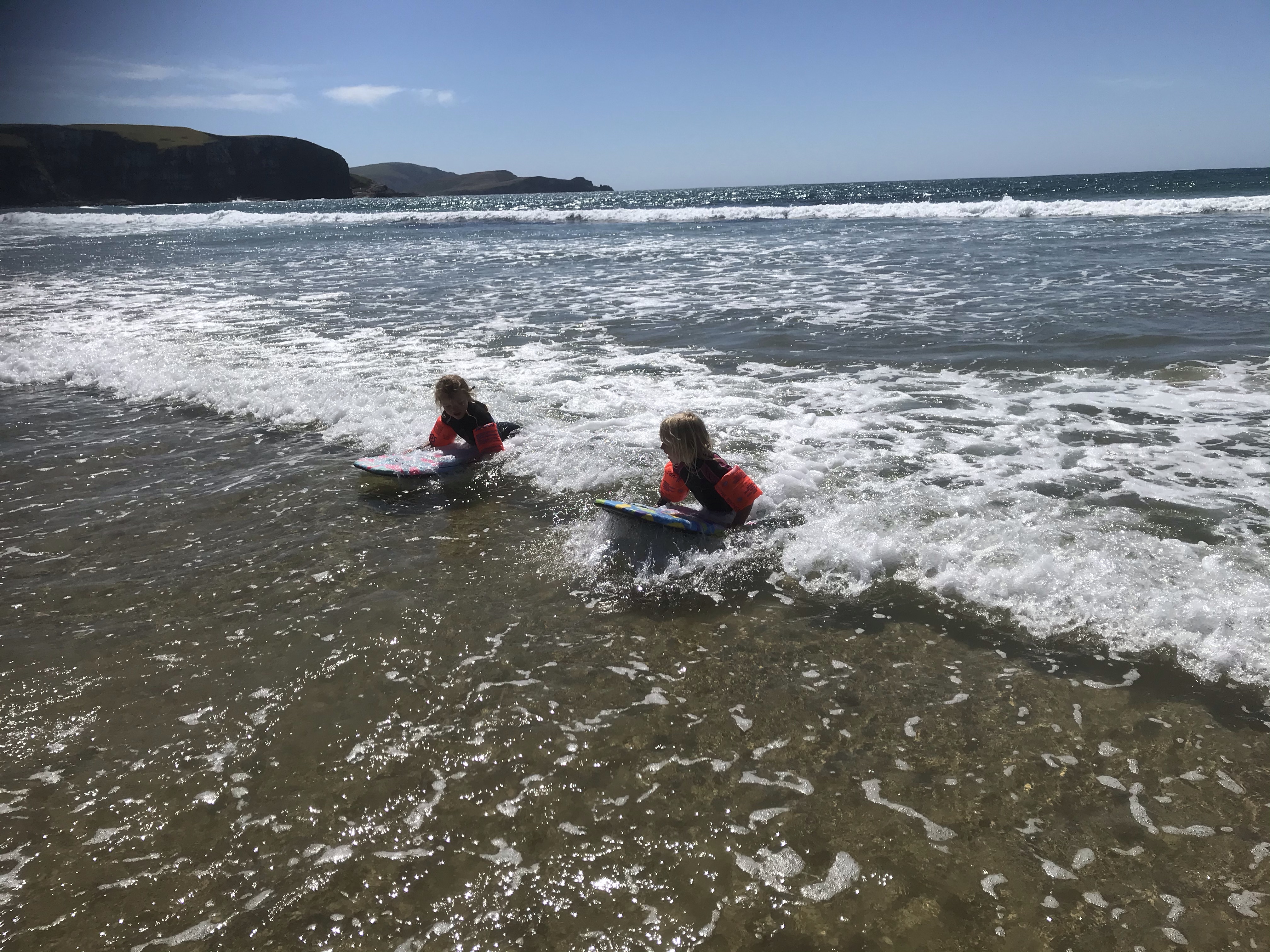 The next day we headed over to nearby Jacks Bay and did the Jacks Blowhole Walk which was an impressively high hole in the ground but the walk itself keeps the views hidden most of the way. We had a great surf on the smaller waves on Jacks Bay and pretty cool having the whole beach to ourselves except for a giant sealion when we arrived. We drove back to camp and it was now super hot and sunny so of course we were all back in the water after plenty of naked running (for the children!!) on the beach first. Two surf sessions in a day always means tired, rubbery arms but big smiles on your face and we all slept very well that night after a final campfire and picnic dinner, magic!