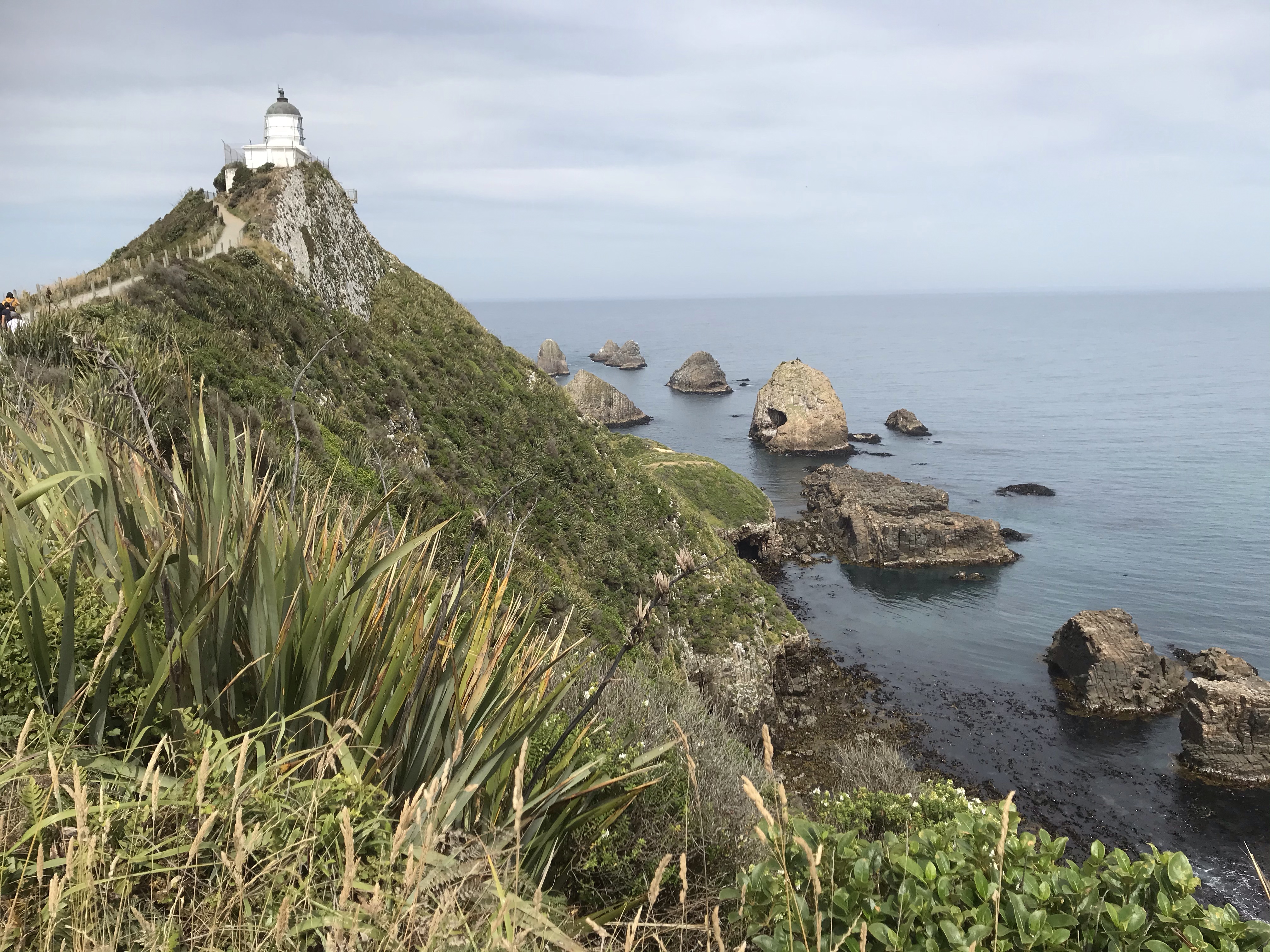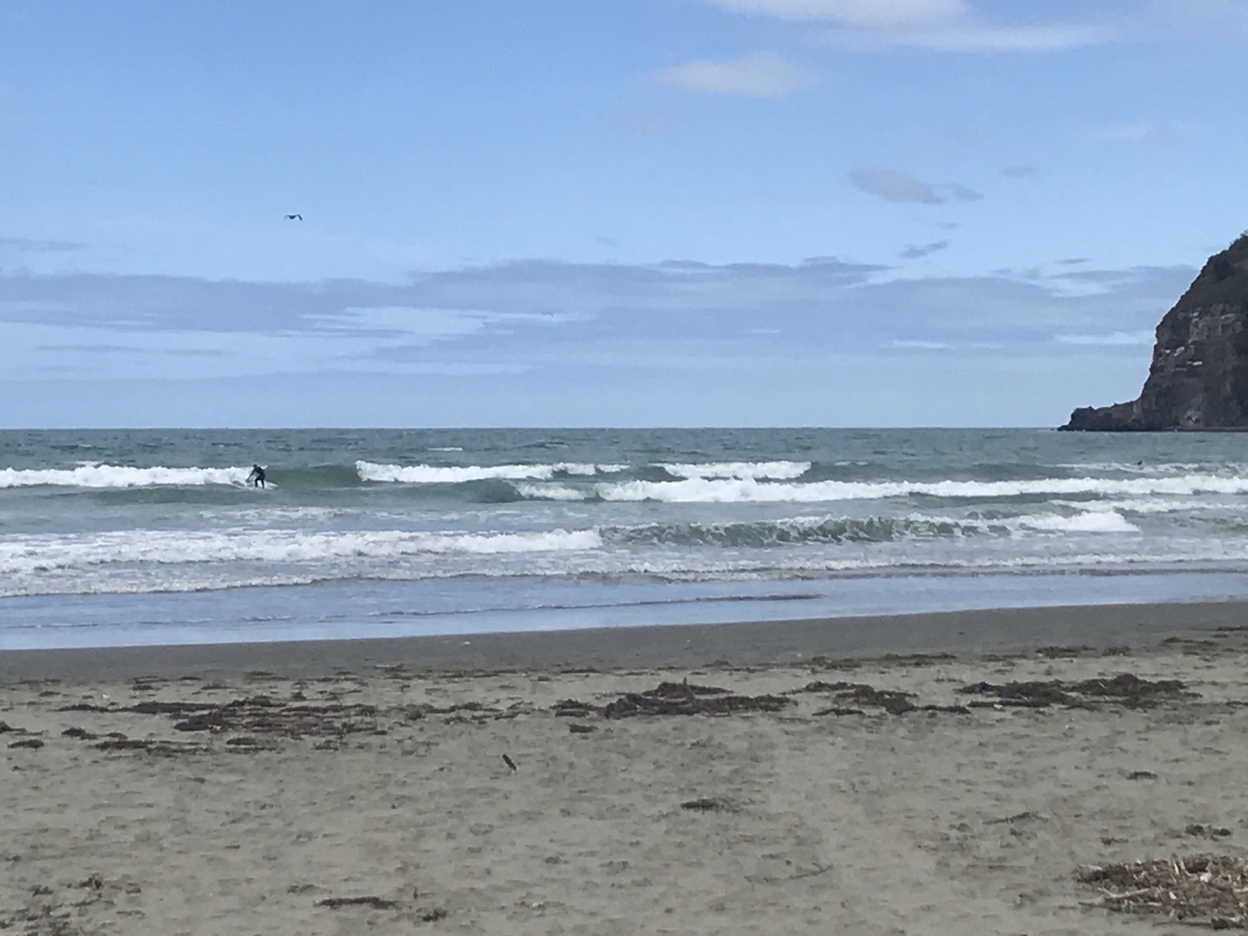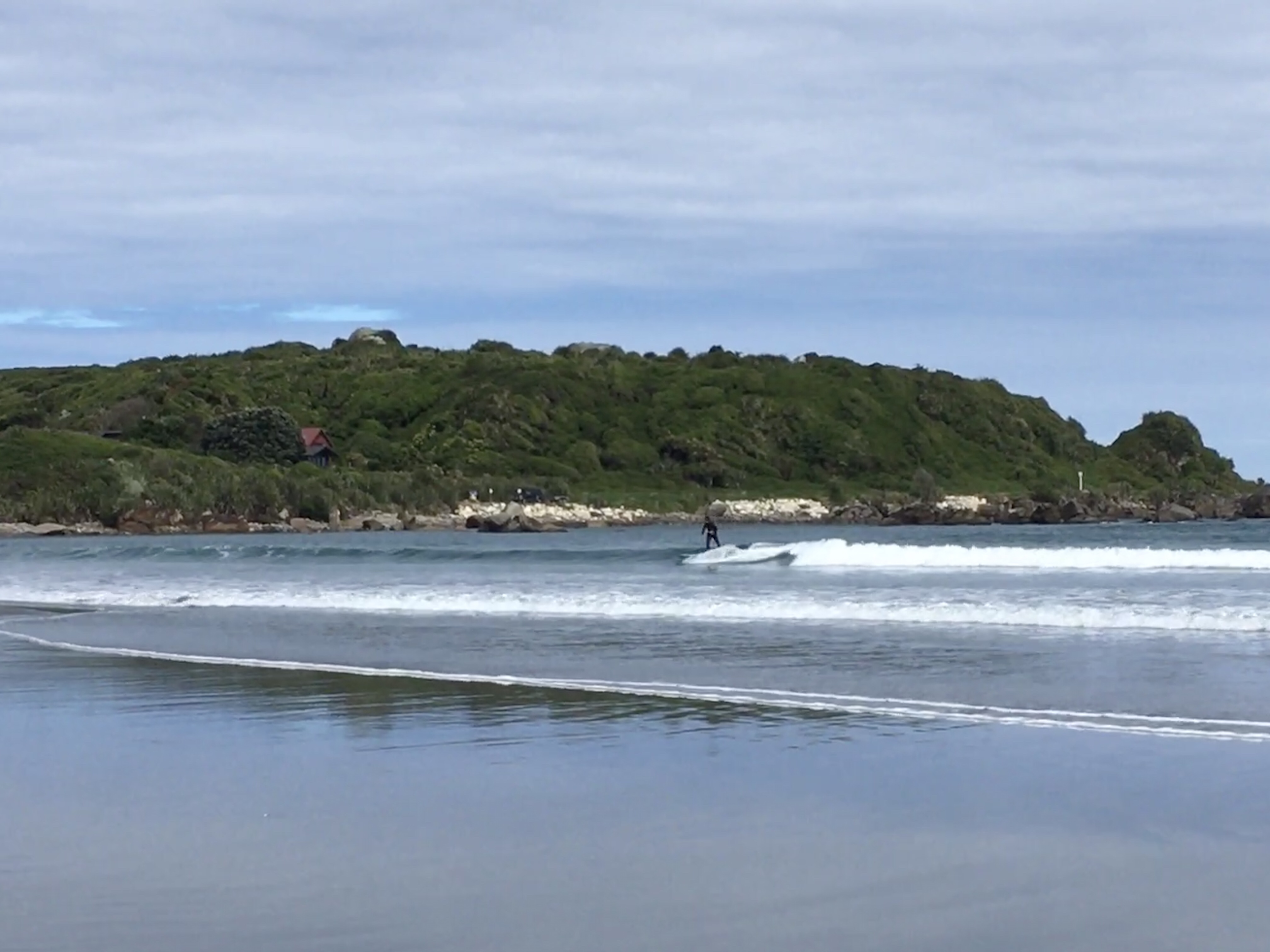 Last day in Dunedin and with the haar rolled in yet again (Edinburgh place names and Edinburgh weather!), we assumed it would burn off in an hour or so and headed up into the hills to stretch our legs. Sandymount Loop has amazing coastal views apparently but walking in the dense cloud wasn’t quite what we were after! We could see the sun shining lower down on the beaches so after a quick lap to tick the summit we drove round and dropped down the very steep sand dunes onto pretty Sandfly Bay, which is another stunning beach, the match of the ones in the Catlins, lots of sea lions again and white sand with islands and cliffs. Surf looked pretty perfect too with offshore winds and a decent swell. Em headed out first and got out the back only to be chased out of the water by an angry giant sea lion who then went after two swimmers chasing them out of the water too! Scary stuff and Em passed the board to me, I nervously headed out further right near some other surfers and luckily didn’t come face to face with any angry sea creatures but did catch some epic rides, surfing doesn’t come any better with big long right handers peeling right across the bay. Em had another go but was spooked a bit by the close encounter. The walk out up the steep sand dunes was predictably very hard work especially with a rucksack full of heavy wetsuits and a 9foot long board but we got there in the end and Ethan even ran some sections!