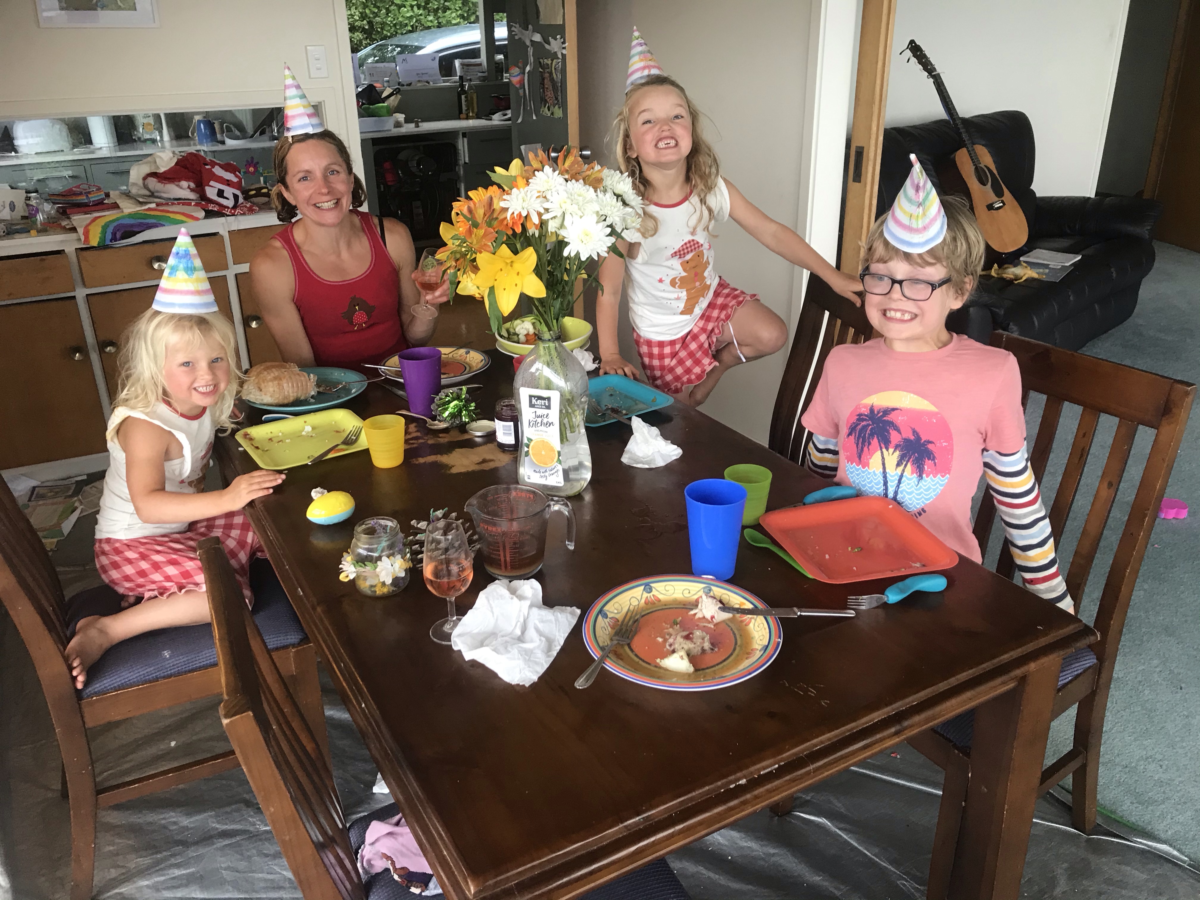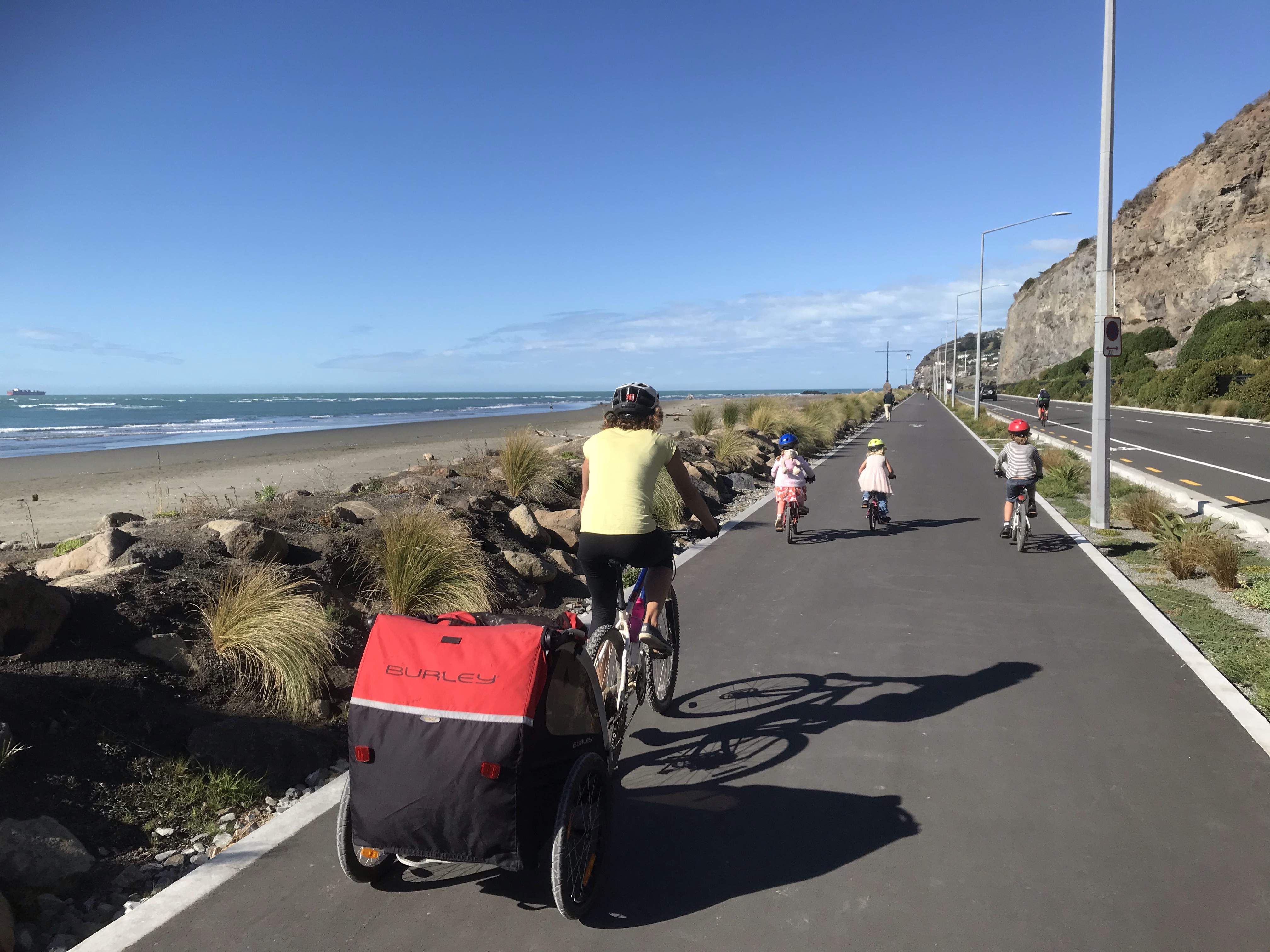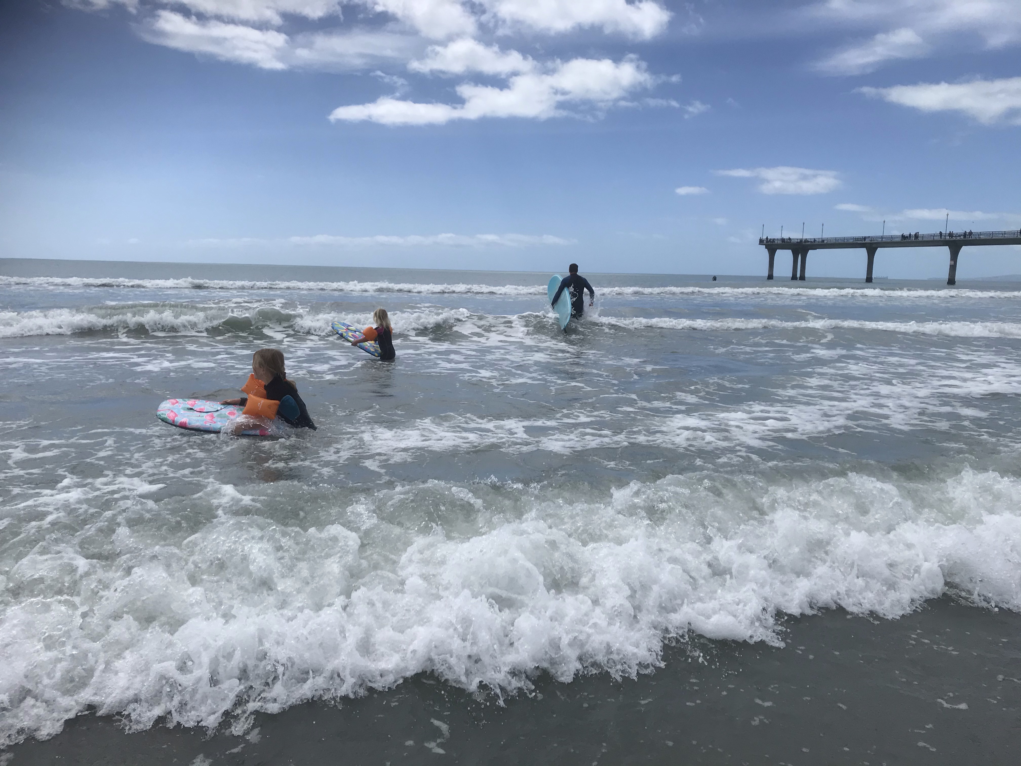 After all that time sat on a boat we needed some fresh air and finished the day hunting for seals on the peninsula, which is a scenic walk and you are pretty much guaranteed to get up close with lots of seals. Back to Christchurch a little bit sunburnt and still rocking from the boat trip but ready for Christmas celebrations and especially the presents, excitement levels had been building for a few weeks now! After so much sun on our mini trip it was quite a shock to have cold, wet days to follow but we enjoyed a good session at Uprising the local indoor bouldering wall and Christmas Eve we went for a laughably wet paddle on the River Avon through town. People must have thought us mad as we launched in torrential rain and sang Christmas songs all the way down the river to the excellent Margaret Mahy play park where luckily the sun finally decided to come out. Lots of colourful penguins have sprung up all over town and the kids enjoyed hunting these out along the way. Christmas Day was again wet in the morning but great weather for opening and appreciating presents and we got our traditional Christmas Day surf in the sunshine at Sumner after lunch which was a nice touch too, and far more pleasant than the usual UK winter surf in head to toe neoprene. Christmas Zoom chats with the family were most amusing too, especially the calendar Em and I had made featuring Sally and Christopher on each page, mostly from their visit and various sleepy Facetime screen grabs! Boxing Day we enjoyed hunting for Christmas trees at Bottle Lake forest and the kids were all biking like pros, downhill and up too, though always with a little bit of whining at times, wouldn’t be a proper bike ride without that!