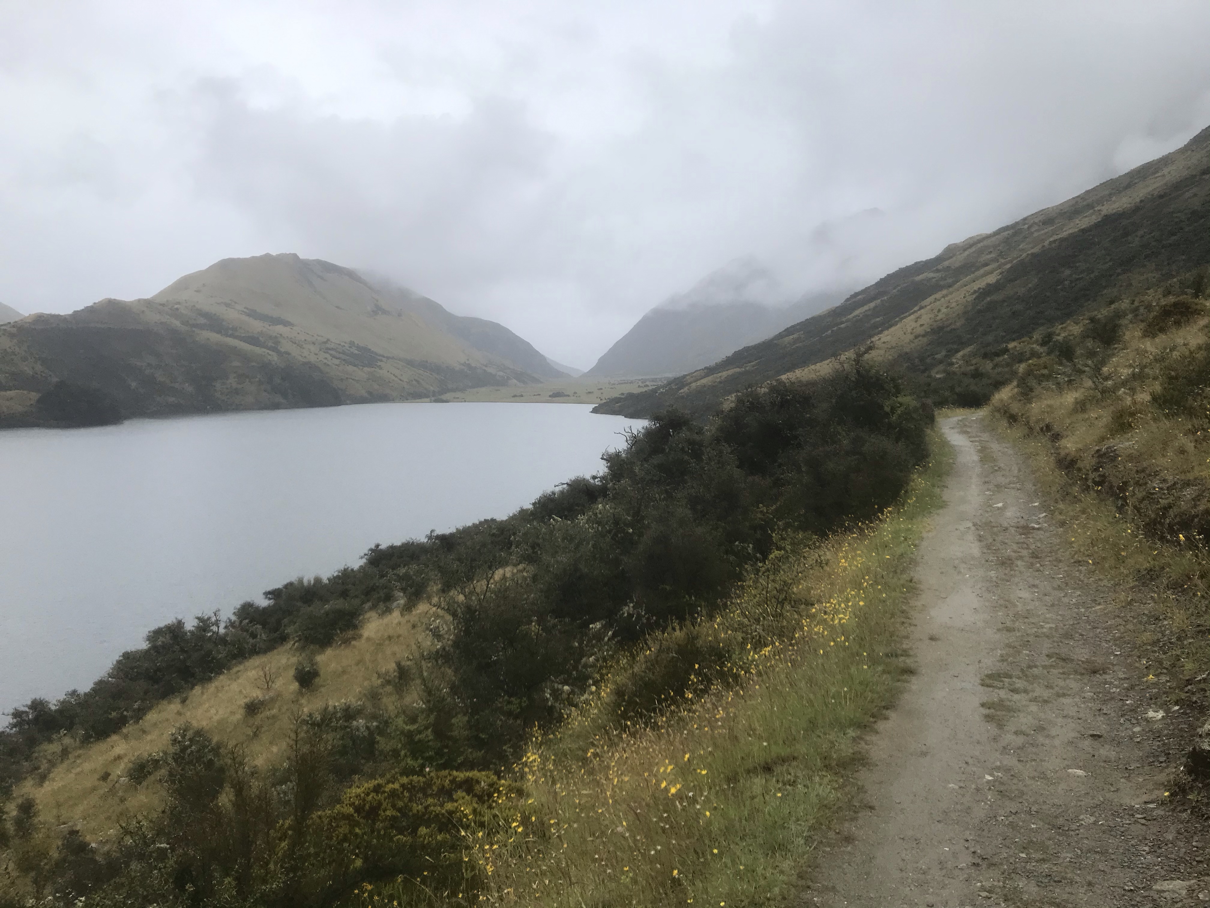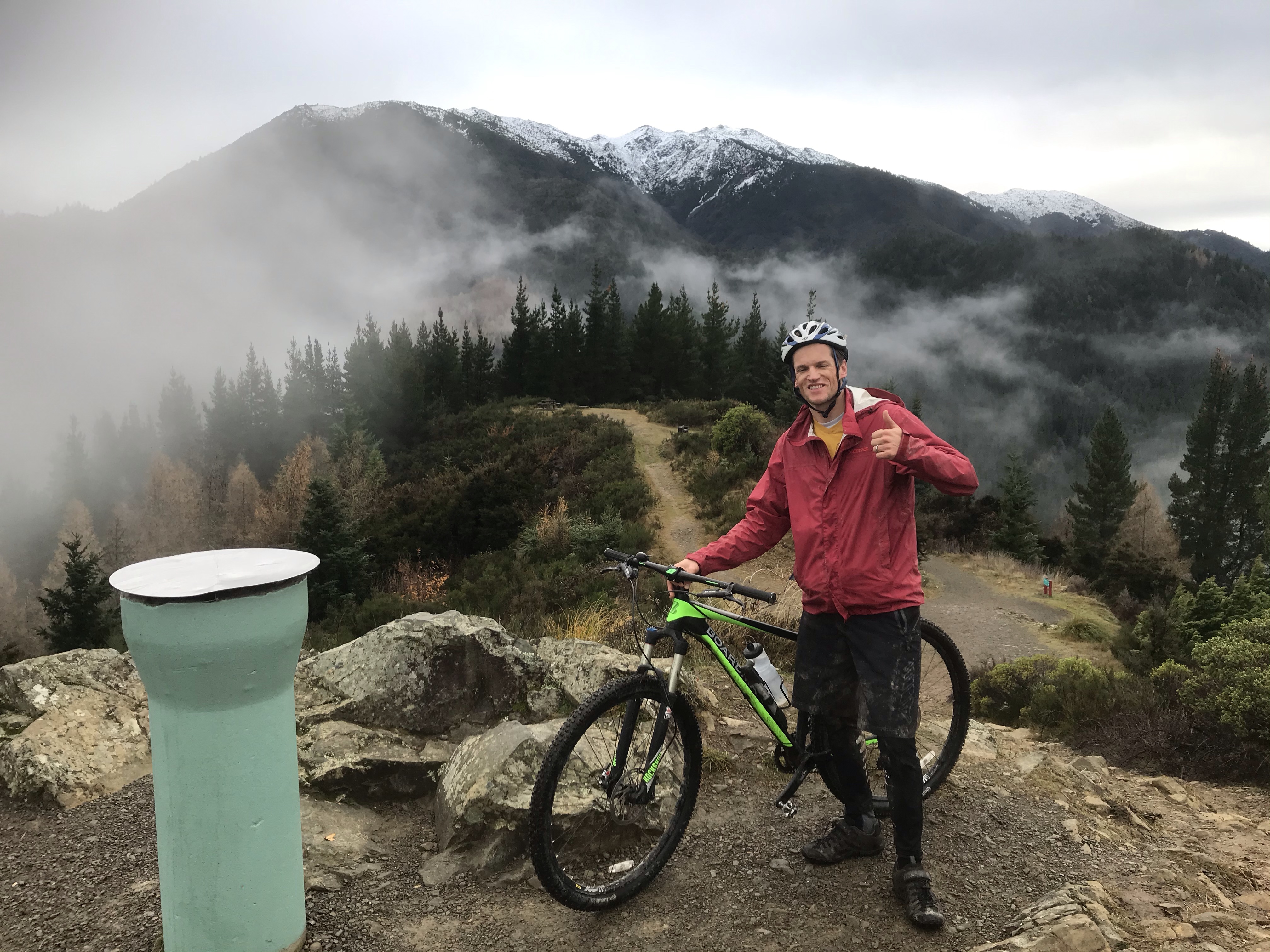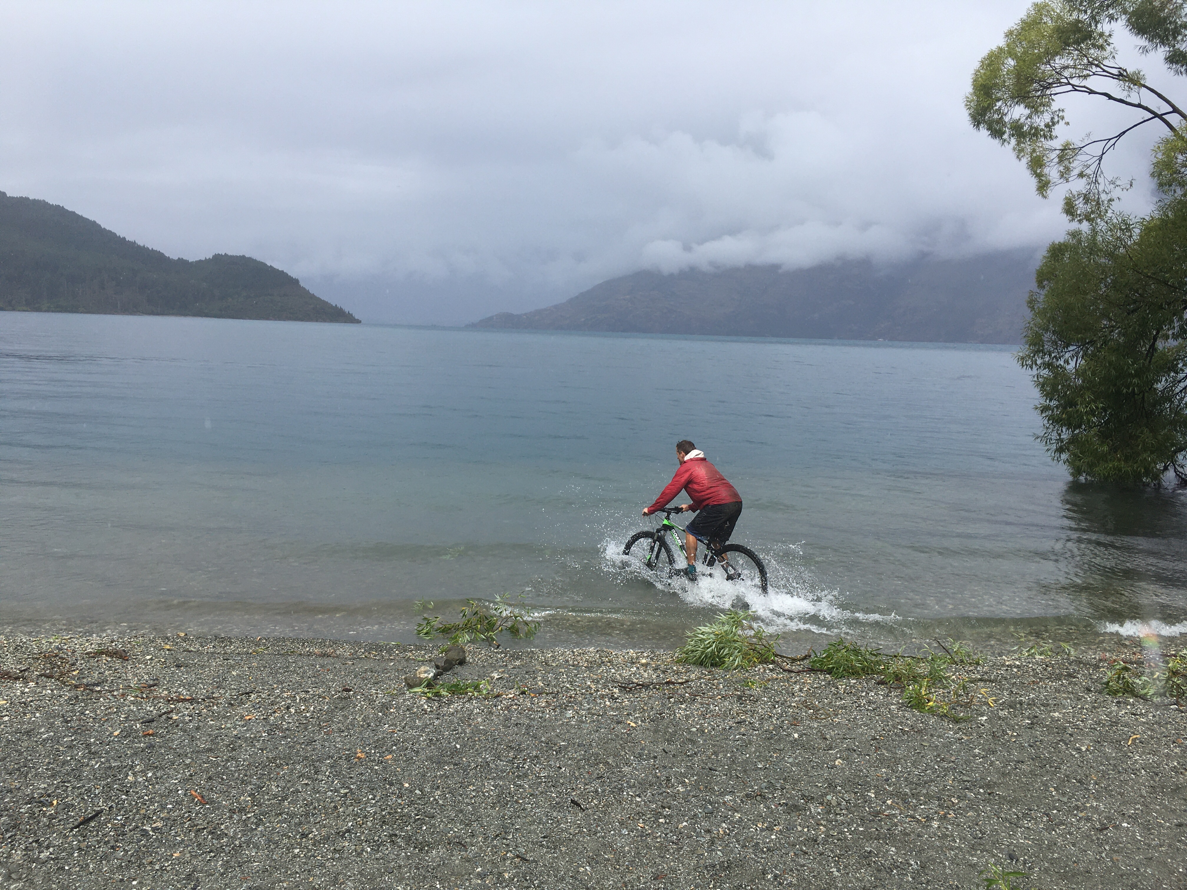 Final day in Queenstown was dreadful weather, torrential rain on and off most of the day, but fortune favours the brave so we tried some biking anyway, Em and I took turns on the classic Moke Lake circuit which is much more my kind of thing, cross country style single track and scenic views in the (dense cloud covered) remote hills. The kids and I tried the Bob’s Cove coastal track from the campsite in full waterproofs but only made it about a mile before admitting defeat after sheltering under lots of trees. They gave it a try which was a commendable effort! The weather was telling us it was game over for Queenstown so I took the tent down in more torrential rain the next morning and we got the hell outta Dodge….