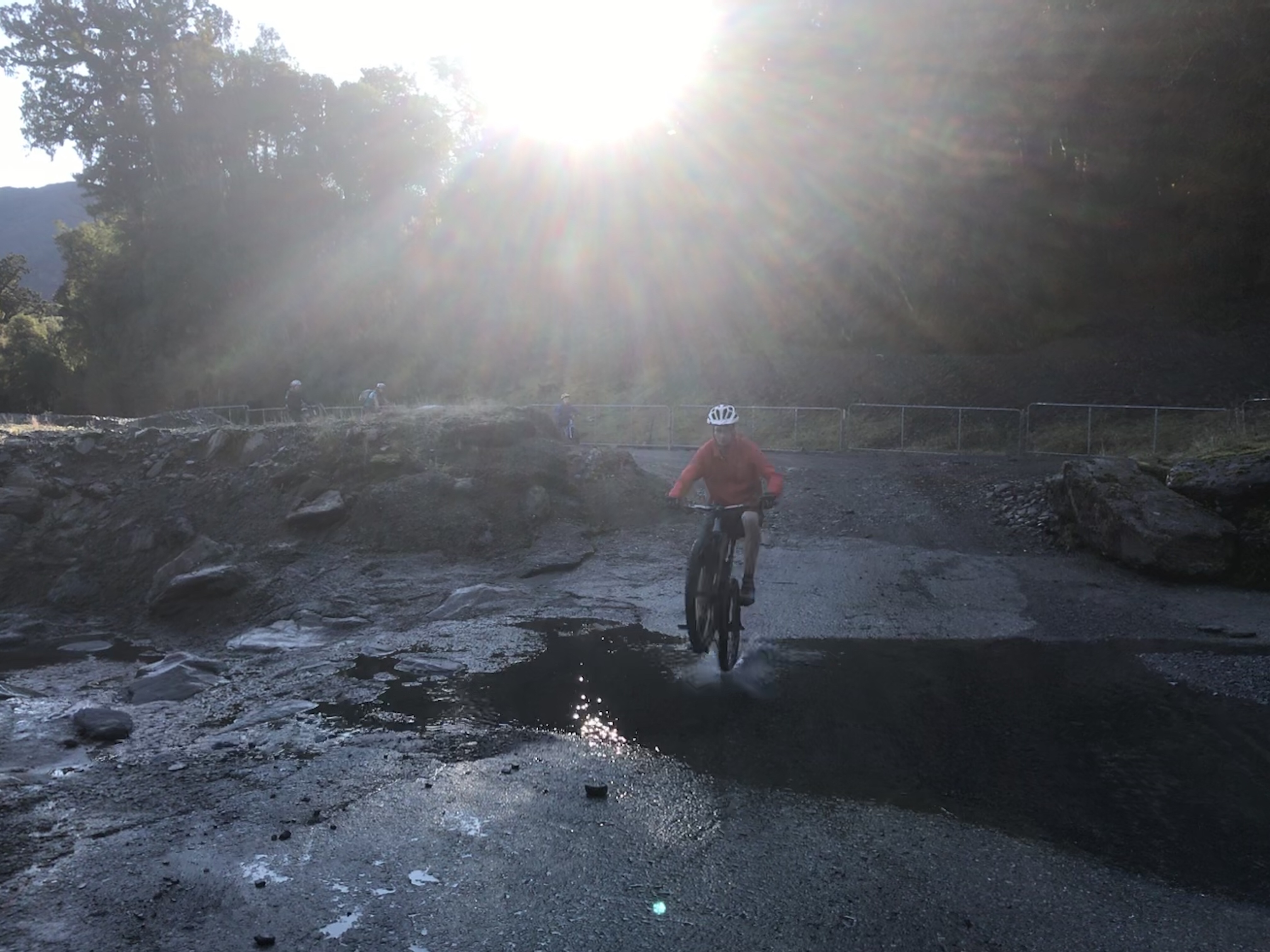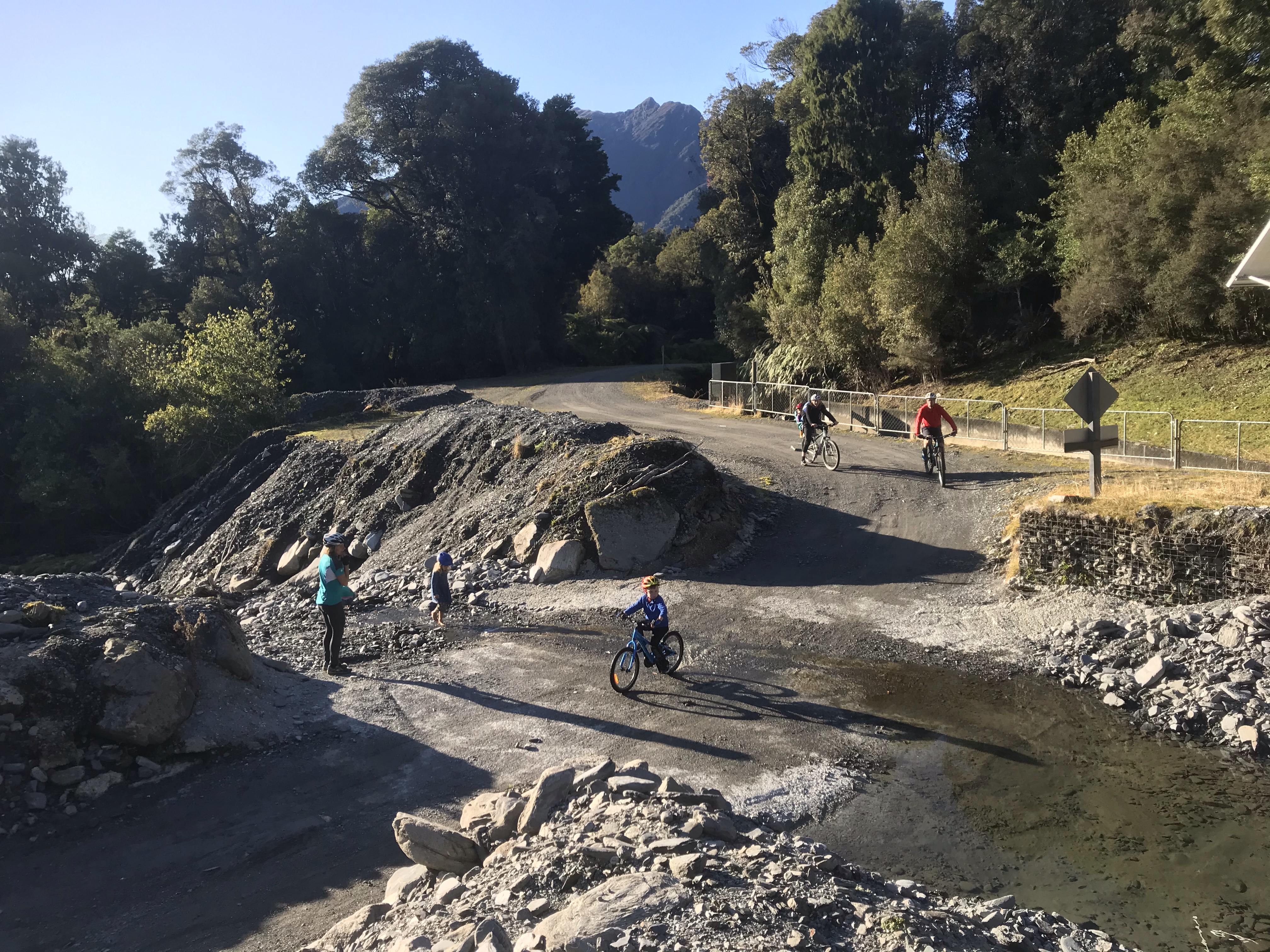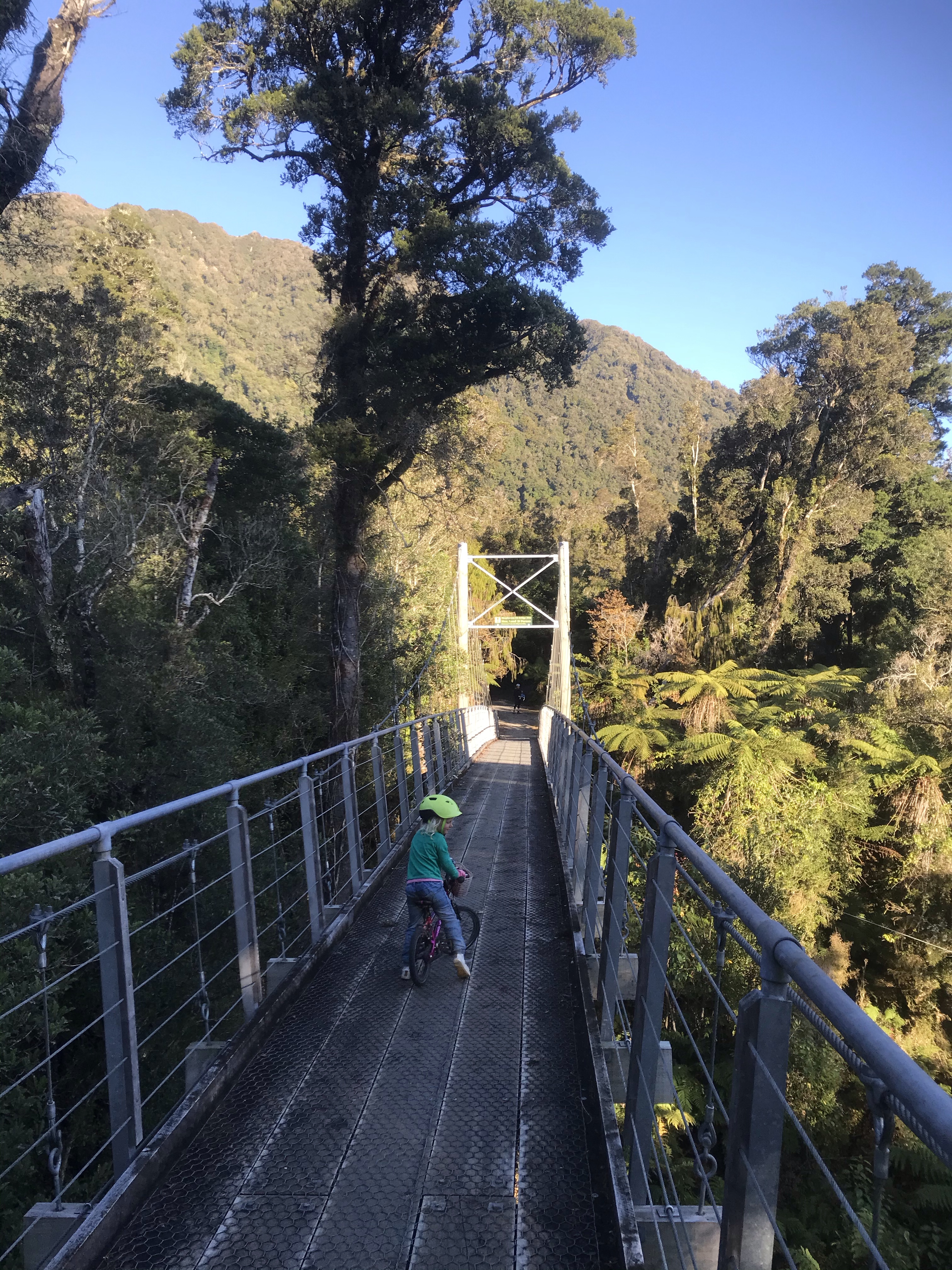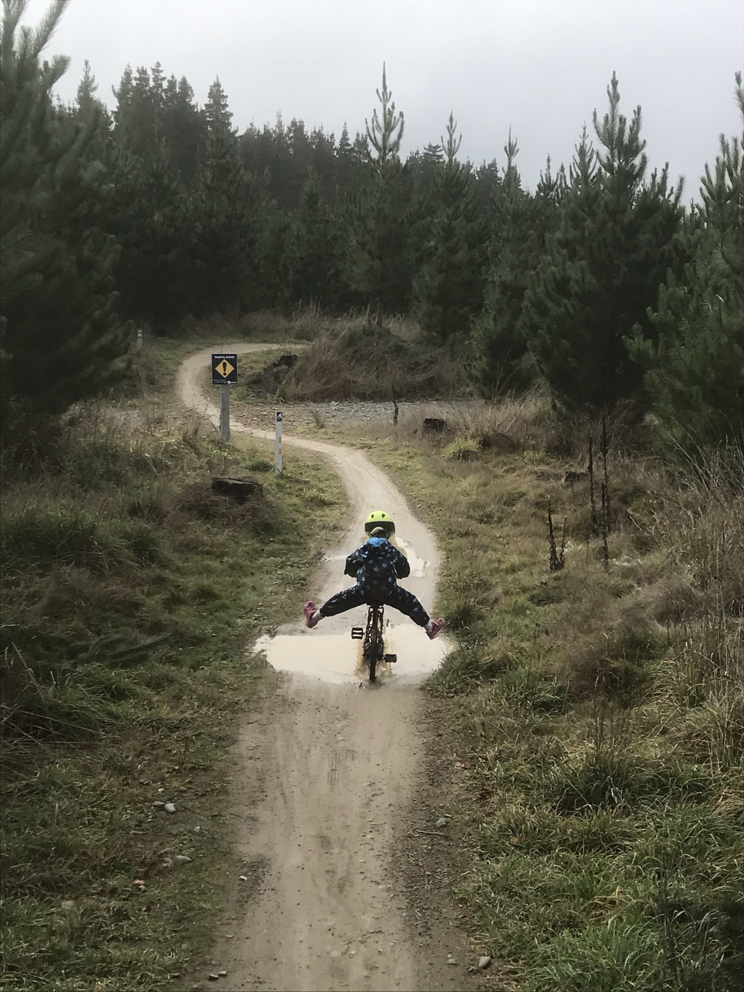 Final day in Queenstown was dreadful weather, torrential rain on and off most of the day, but fortune favours the brave so we tried some biking anyway, Em and I took turns on the classic Moke Lake circuit which is much more my kind of thing, cross country style single track and scenic views in the (dense cloud covered) remote hills. The kids and I tried the Bob’s Cove coastal track from the campsite in full waterproofs but only made it about a mile before admitting defeat after sheltering under lots of trees. They gave it a try which was a commendable effort! The weather was telling us it was game over for Queenstown so I took the tent down in more torrential rain the next morning and we got the hell outta Dodge….
