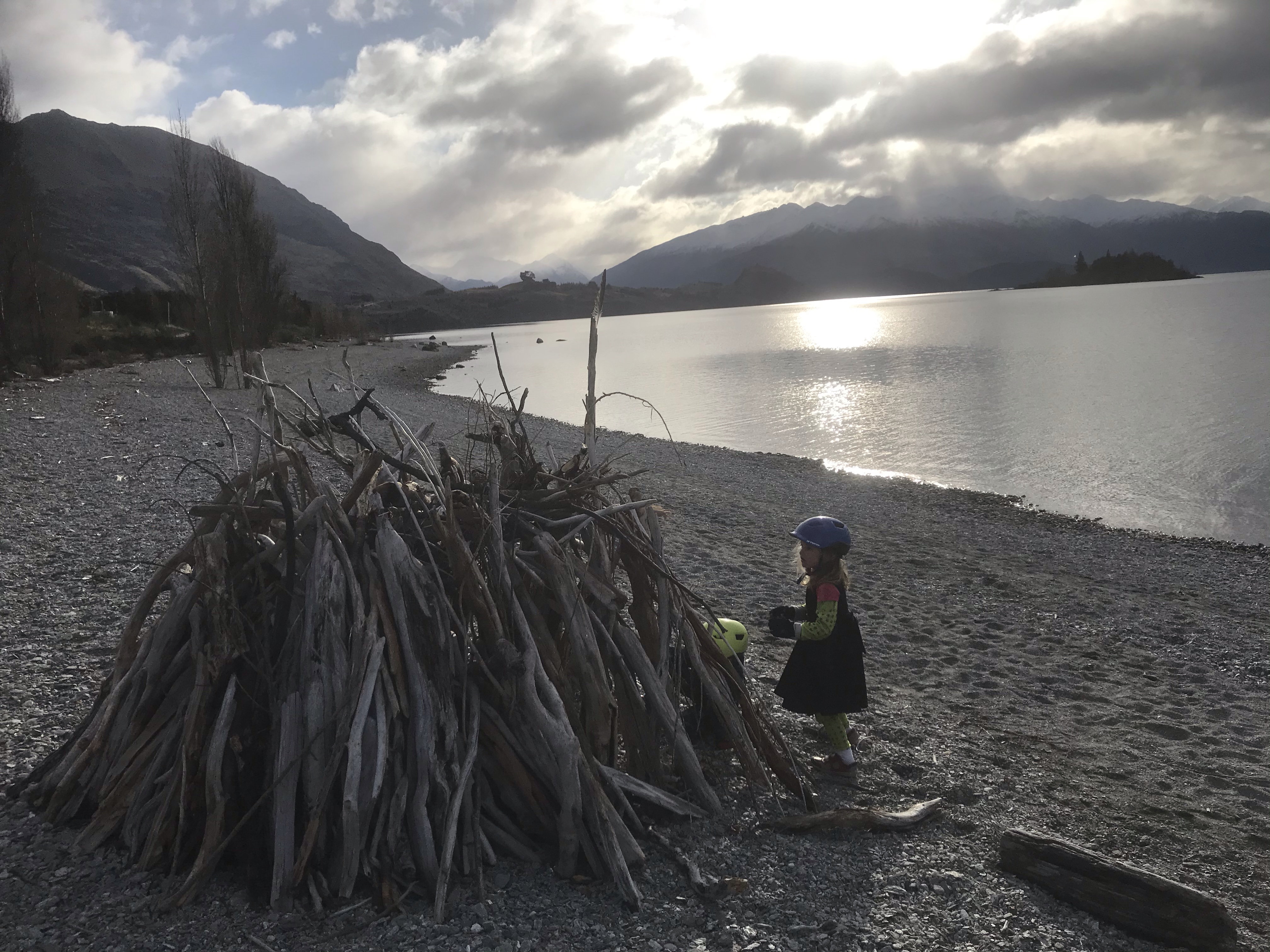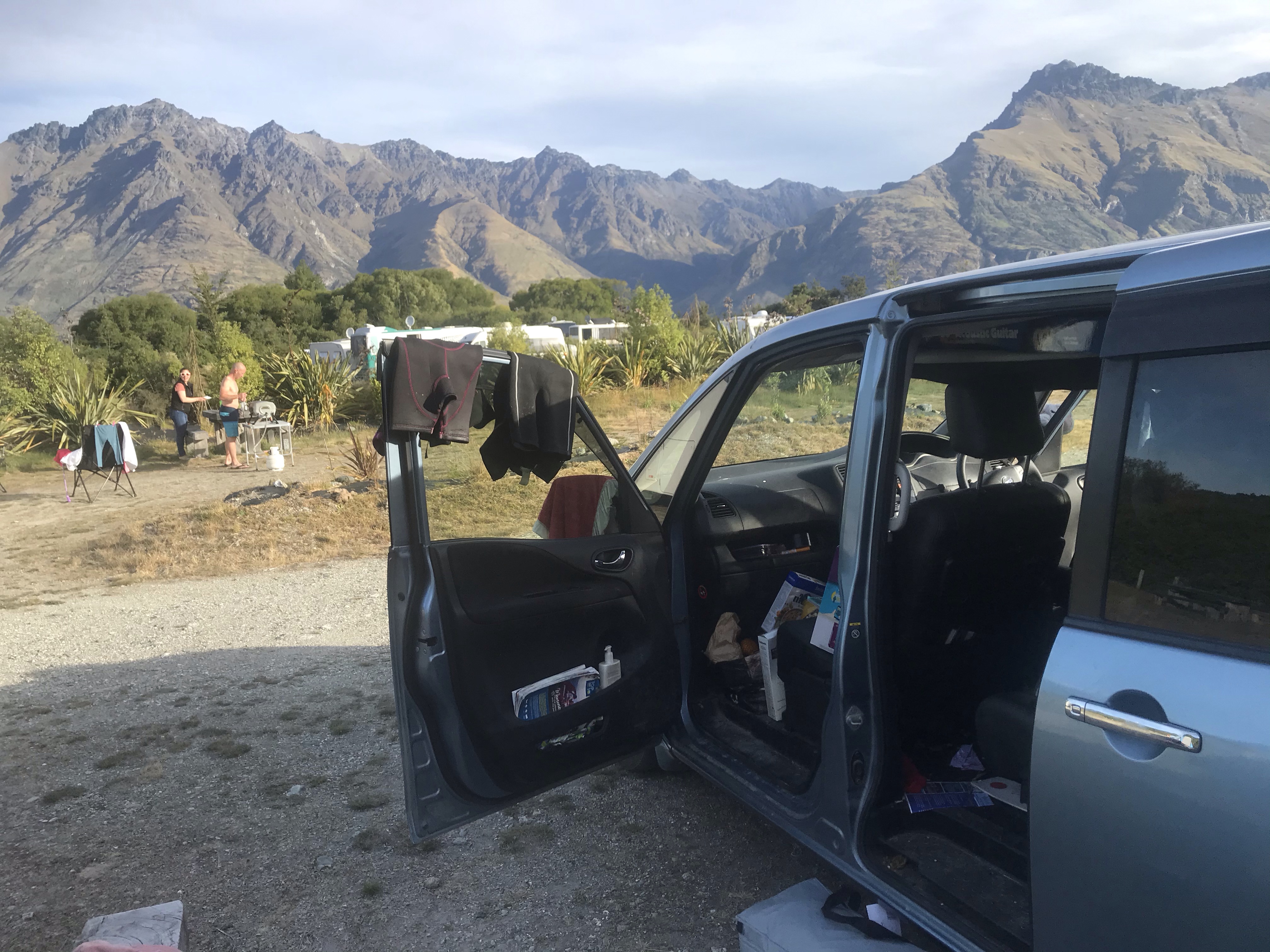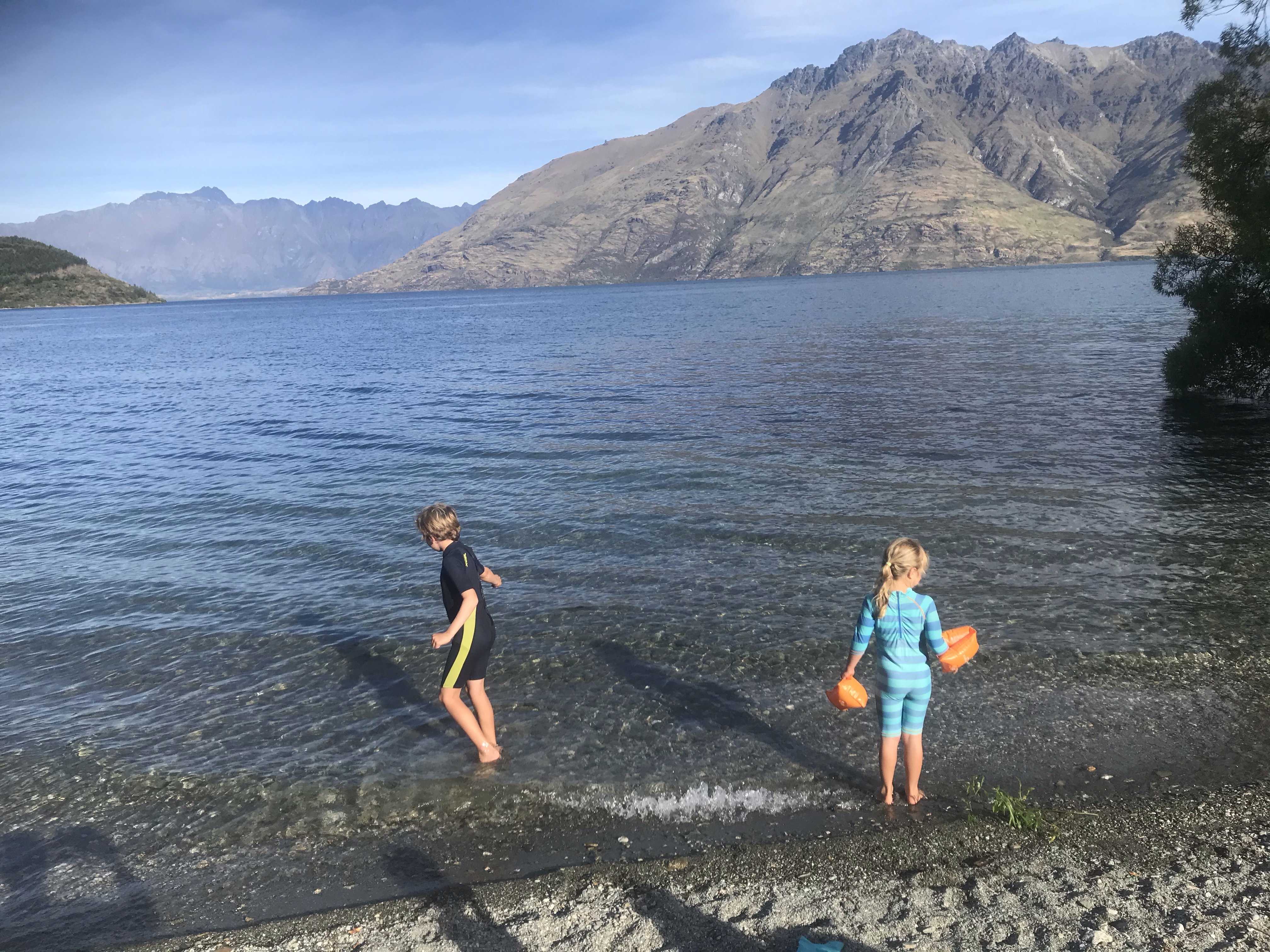 Having stayed in the heart of busy, noisy Queenstown last summer we definitely knew we wanted a bit more solitude this time, so opted for the DOC campsite at twelve mile creek west of town on the lake, totally off the grid despite only being you guessed it twelve miles from town. Long drop toilets, no showers or shelter made it a bit challenging when it rained (and boy did it rain!) but swimming in the lake each evening was magic and we just about managed to eat outside only having to use the tailgate of the car as shelter once or twice!