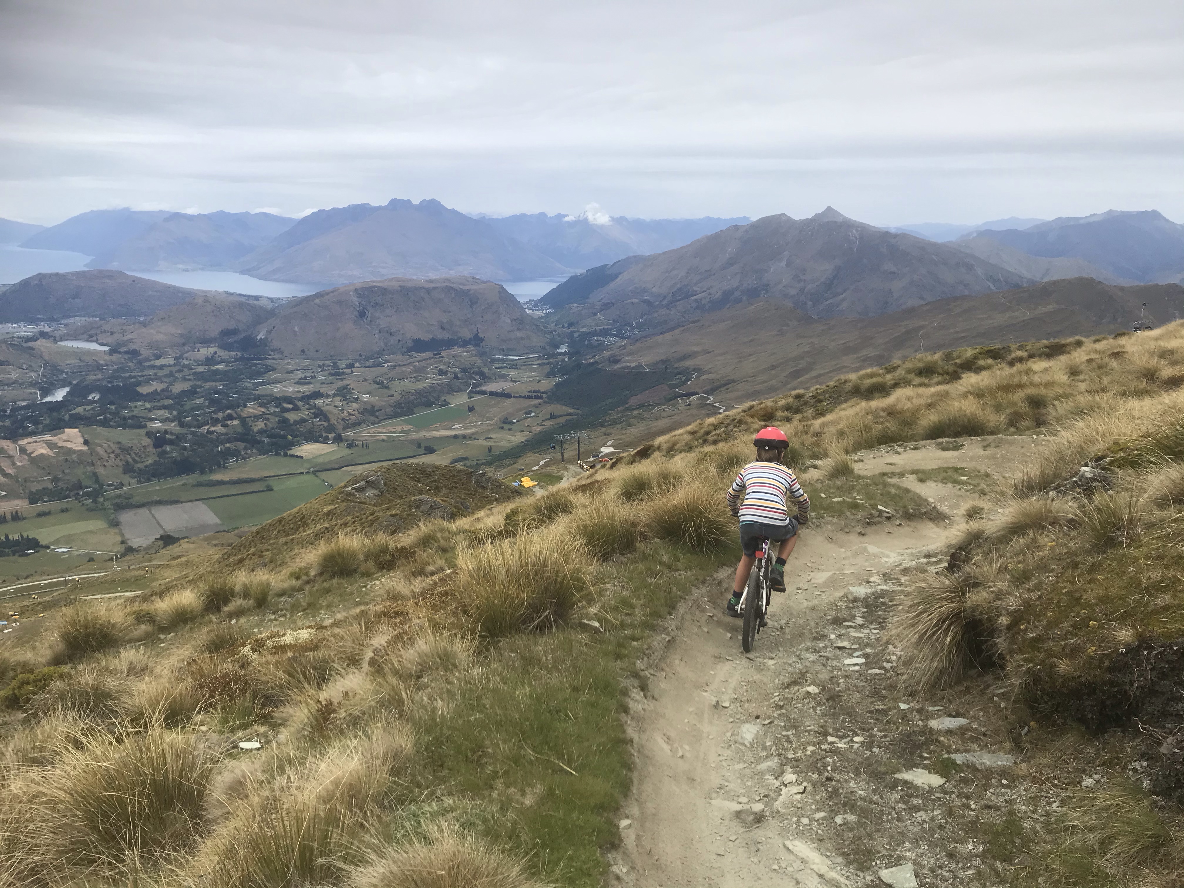 Plan for Queenstown was very much to check out some of the world famous mountain biking and we started with the highest one seeing as the weather looked set to get worse. I asked the guy at the ticket office whether he thought the biking was suitable for children and he said five year olds had done it before, it just depended on the skill level of the rider, well Iona is the bravest four year old I know so only one way to find out! Coronet Peak has a ski lift with bike attachment which takes you right to the summit of the mountain for great 360 degree views and an awesome blue (but airy) trail back to the ski centre, Ethan and I raced ahead and Em brought the girls down not far behind. Most impressive is none of the kids have suspension but they handle the rocky trails no problem. Em and I then both got our money’s worth (taking turns) by doing the excellent flowy Rude Rock, exciting Pack, Sack and Crack and old school Pack trail down into the remote Skippers Canyon. A scenic uphill up the impressive gravel Skippers Canyon Road brings you back to the ski road and a final flourish down the insanely fun Hot Rod which is like a roller coaster of berms and jumps, shame my suspension keeps losing pressure making it that bit more challenging. Some of the best biking we’ve done in New Zealand for sure, well worth hunting this link-up out if mountain biking is your thing!
