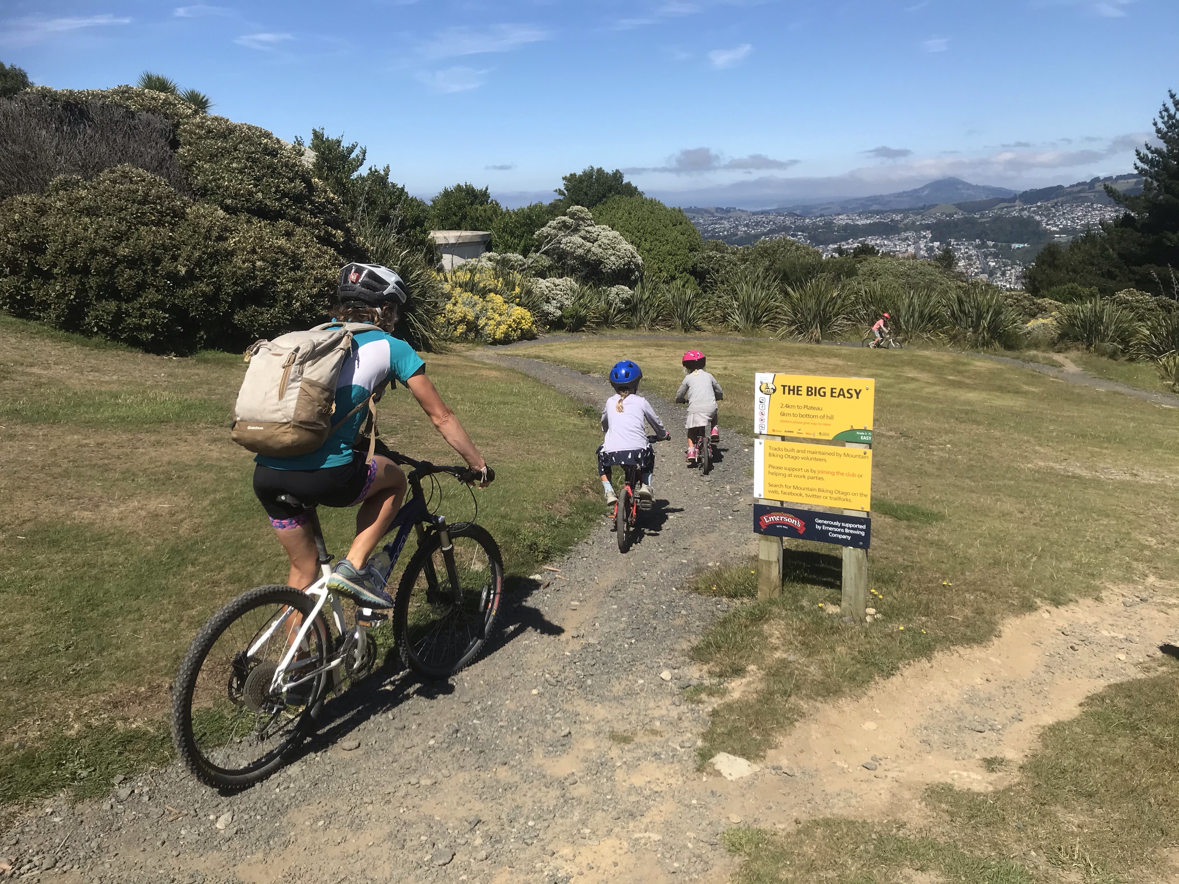 The next day we fancied some more mountain biking so headed up Signal Hill just north of Dunedin and drove to the very top of the hill for a cracking descent of the well named 6km “Big Easy” – the kids and Em went down this and I enjoyed the Mrs, the Mistress and Maverick Mikes before cycling back up the Big Easy to the top to move the car to the bottom. Sadly the kids now think bike shuttles are the way forward and it will be hard to motivate them to cycle up hills again! Em went back up to try the harder trails and the kids and I did a couple of laps of the fun Butt track. A great trail centre ridiculously close to town, I met two guys who’d nipped up for a lap or two in their lunch break! The day’s heat had cranked up so we all needed a well deserved ice cream and swim/SUP in Macandrew Bay on the way back to camp…