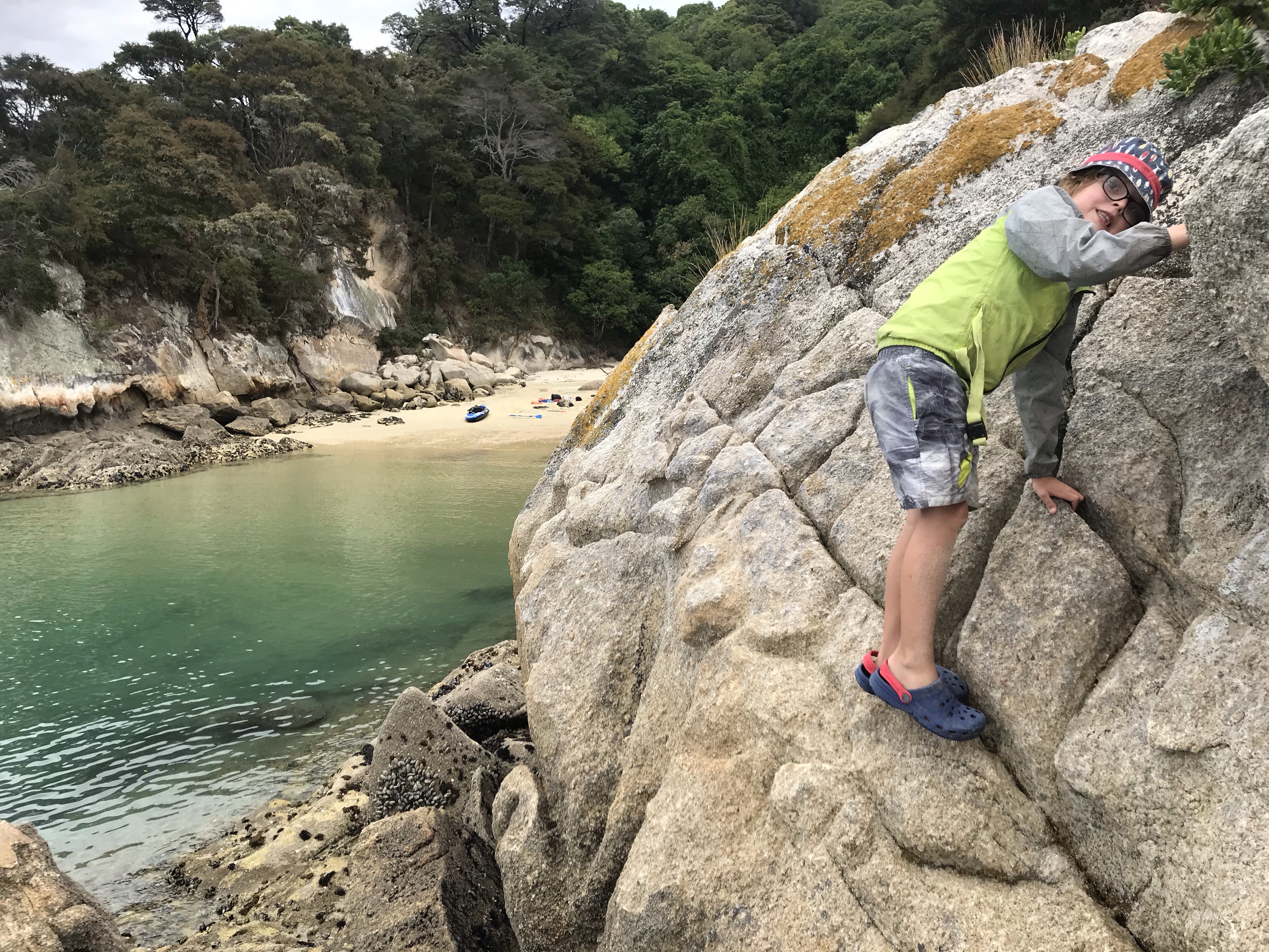 I know certain phrases are getting rapidly overused in this blog but honestly I keep being very pleasantly surprised on this trip! NZ really does deliver scenery on a grand scale and though you miss the culture and architecture you get in cities like Edinburgh and Paris if you’re into the outdoors in any way you can’t fail to love the wild open spaces, snowy mountains and rugged beaches here…anyway I’m rambling again, back to daddy daycare. Got back to the campsite with time for one more adventure before dinner so walked through the scenic woods behind the camp to Lake Gunn which was windier than we’d hoped for a swim and SUP so changed the plan and had a fun float with four of us on the SUP across the lake and down a slightly spicy grade 1 river back to camp…time to get cooking Daddy, best part was Em returned safely from the mountains during dessert so we could sleep well after all of that!