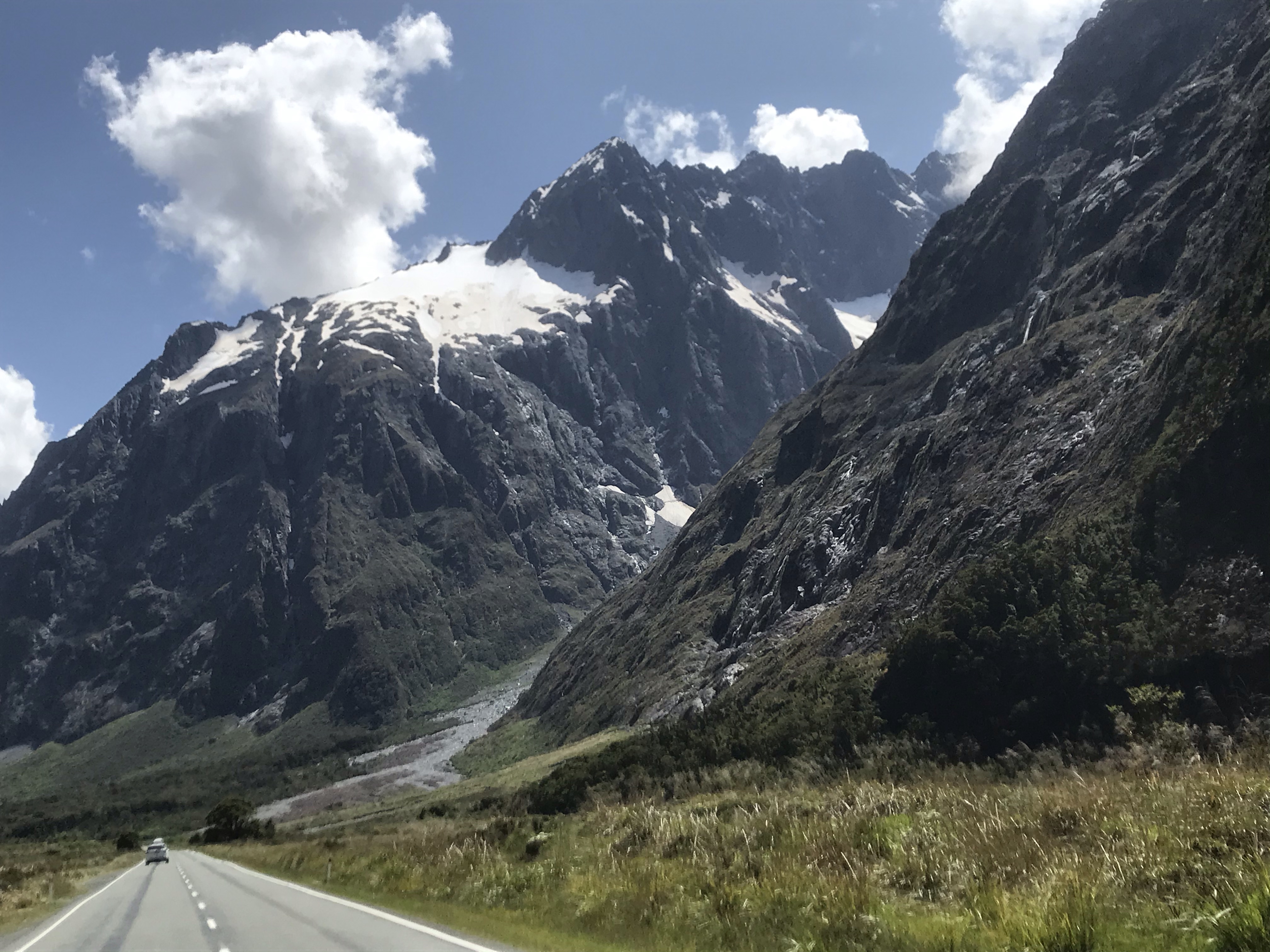 Not to be defeated we drove round and attempted to walk to the waterfall instead but sadly the path was gated and locked, so we went with plan c) an expensive boat trip to the waterfall, this was laughably short at 1 minute in the boat for 30 bucks plus 20 bucks parking, swimming might have been a better option!! Milford is the first place we’ve visited which has gone tourist crazy prices since my last visit. Though it was a nice waterfall there are plenty of nicer free ones all over NZ. Ethan (normally the politest member of the family!) summed it up well as we left telling the poor boat driver who’d already had cutting comments from Em and I, “Thanks for nothing!!” We felt bad as Ethan had been excited by all the fancy cruise ships coming in and then our tiny dinghy boat arrived! Oops, next time wee man, we’re broke now after weeks of travel!